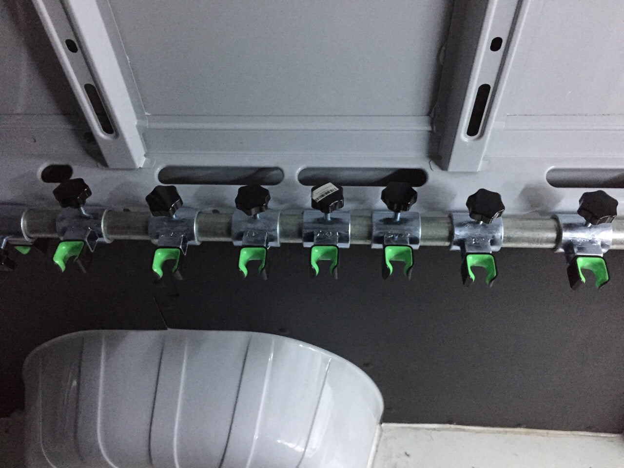 The CLUGs are glued to sliding brackets for a ton of flexibility when positioning the bikes the make the best use of the space.