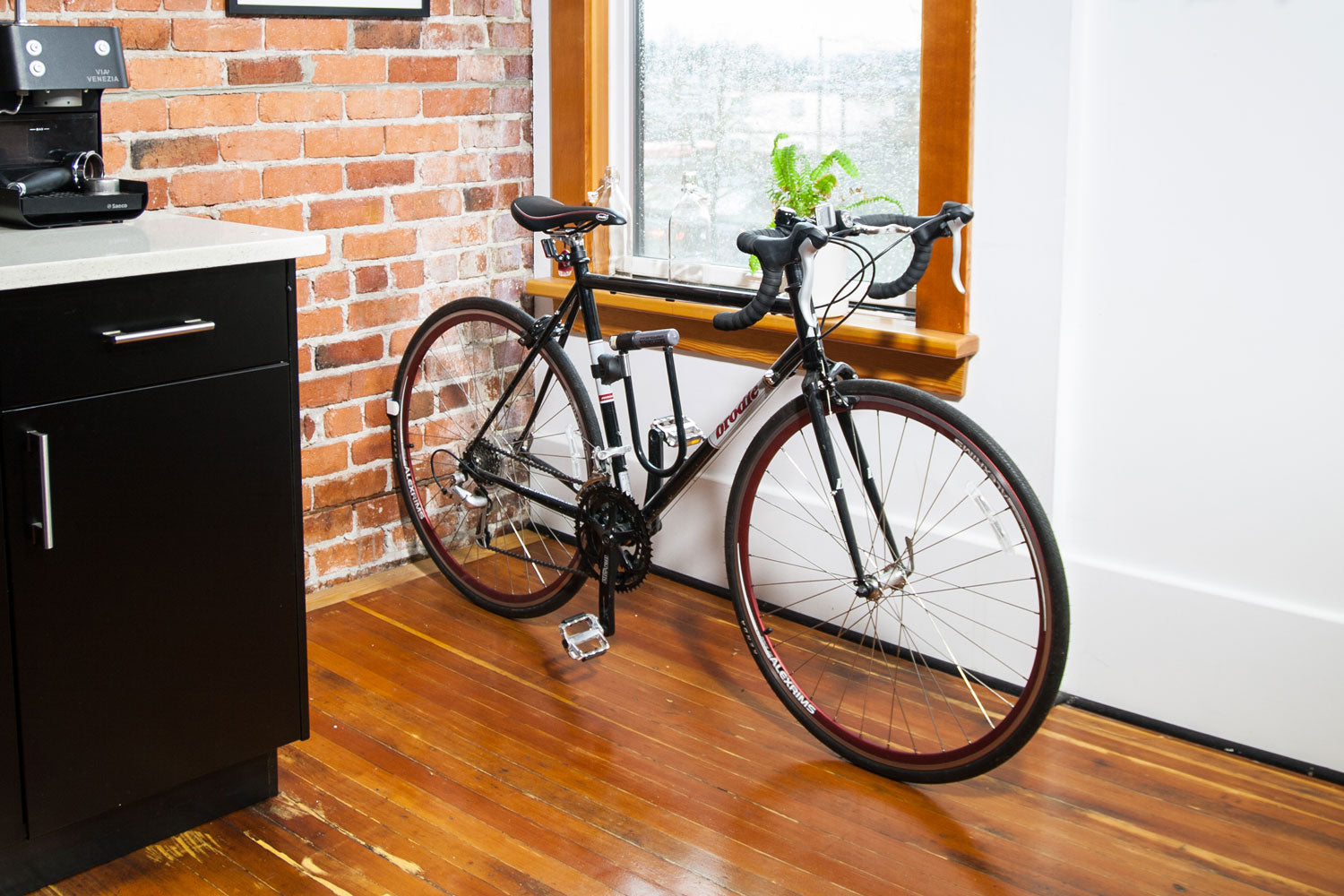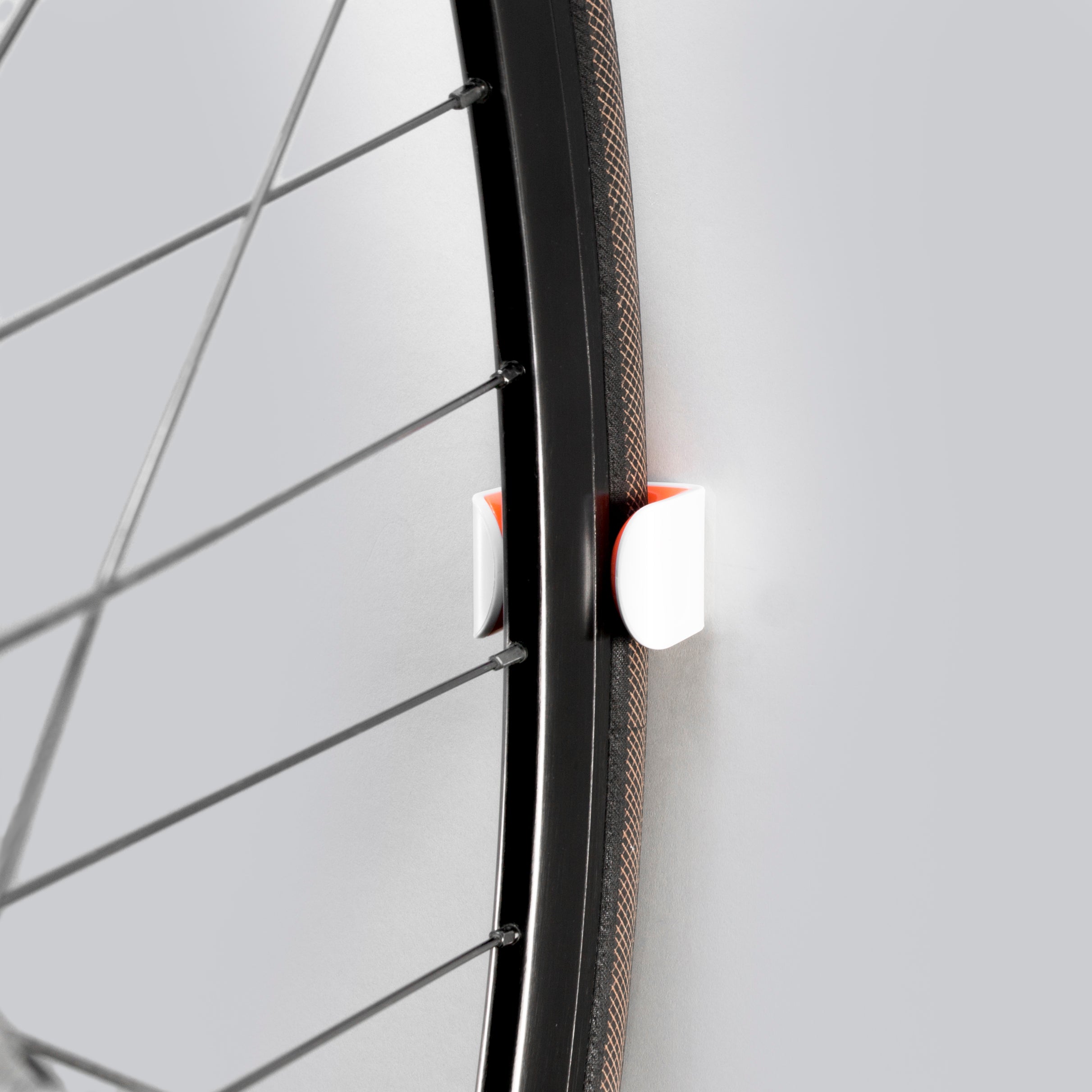 And when you’re not using it, CLUG is just a small wall ornament, unobtrusive and out of the way. Just look at how small it is. (That's the CLUG Roadie in White and Orange, gripping a 23mm tire).