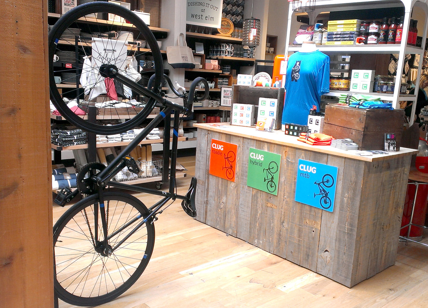 This weekend, the wonderful people at West Elm Market here in Vancouver - purveyors of all things beautiful, fun and useful for the home - hosted the first ever CLUG pop-up shop. They were so kind to let us have a space to put up a bike, prop up some stock and sell a few units to their customers. We couldn't think of a better place to have a coffee and buy a CLUG at the same time.